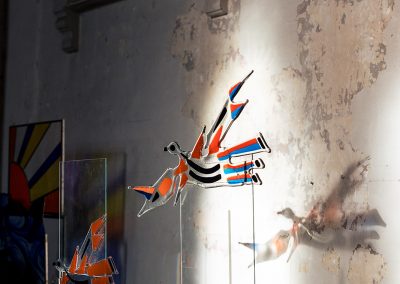 Glas boeit en intrigeert me om de ongekende mogelijkheden. De typische uitdaging, die het werken met gesmolten glas met zich meebrengt, voert ons naar die extra dimensie: het schilderen met kleur in de vloeibare glasmassa, terwijl alles transparant blijft.