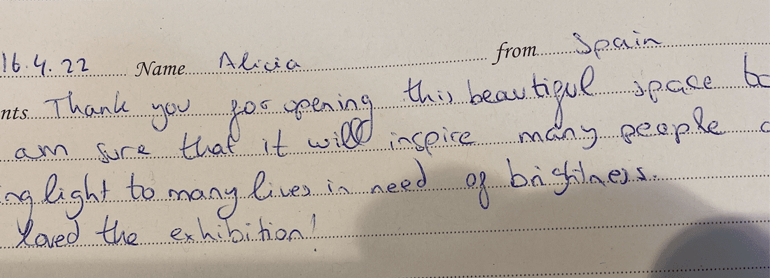 Het waren Alan en Jille Daiton op terugreis van Polen (huwelijk zoon), die de vijfduizendste waren die een kijkje kwamen nemen. Het kunstwerkje namen ze mee naar hun huis in Wotton under Edge (bij Bath).